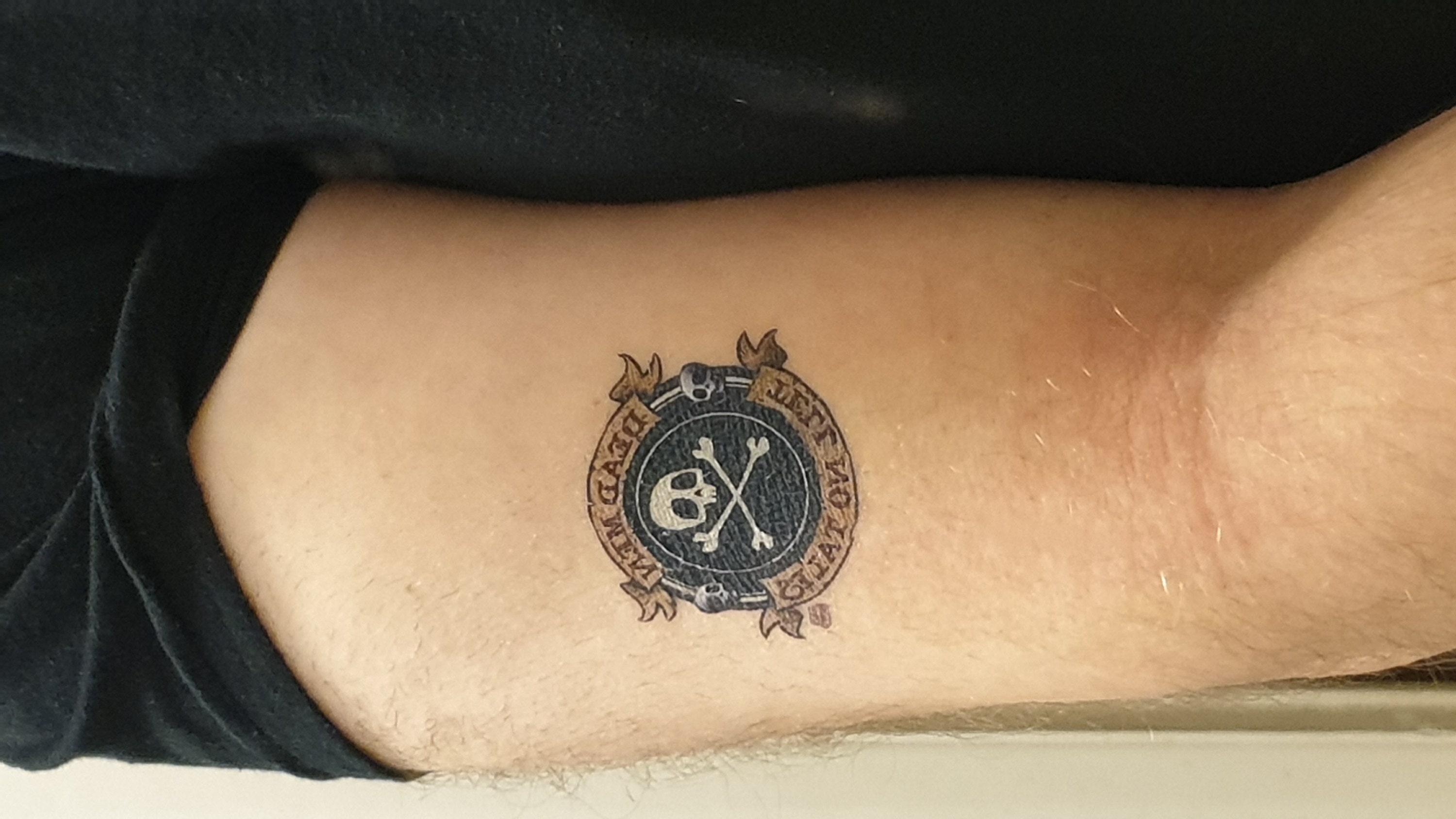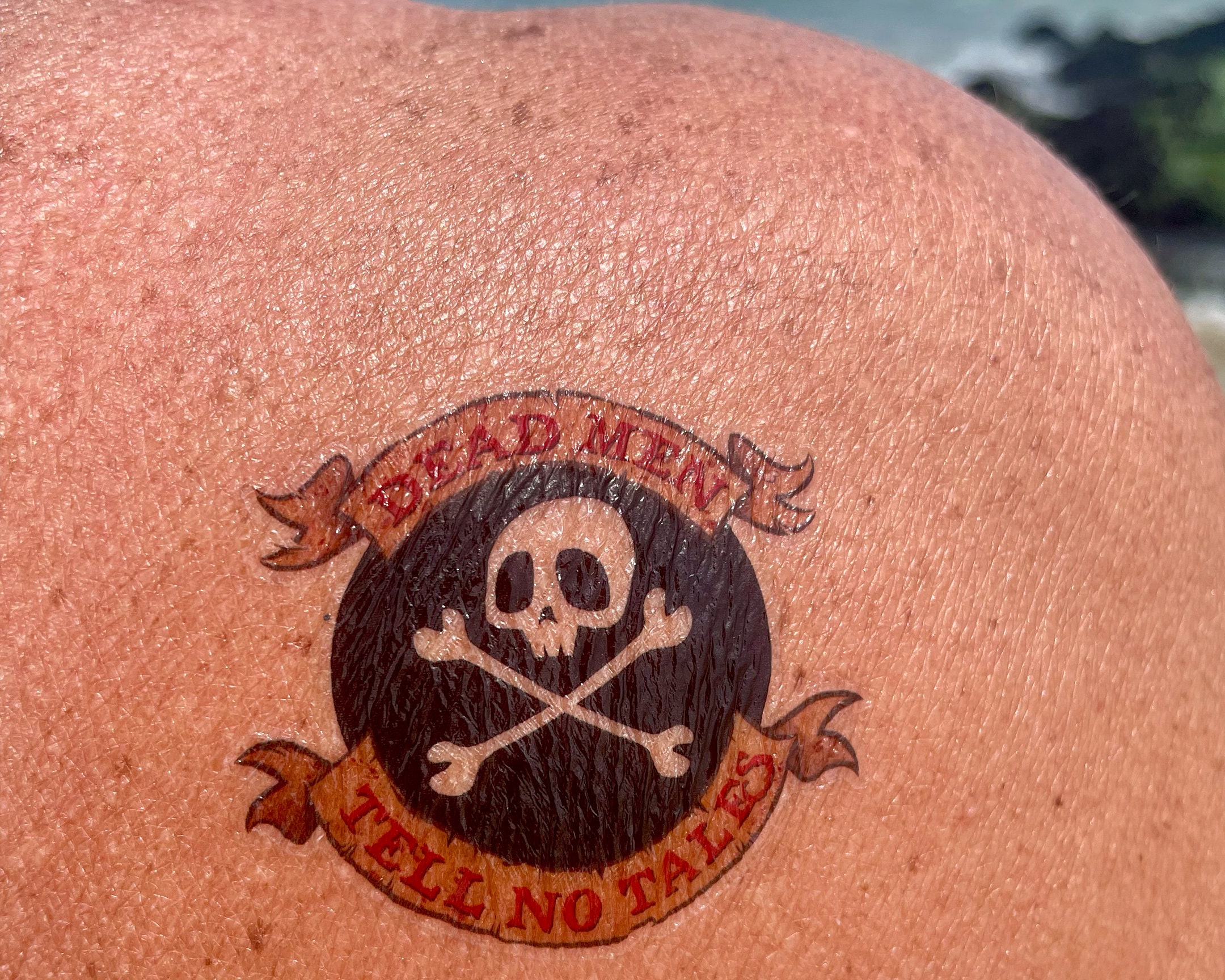 Ahoy, mateys! Maybe ye wanna flex yer dangerous side or maybe ye've just got a thing fer pirates. Either way, this tattoo will make you the envy of the seven seas!