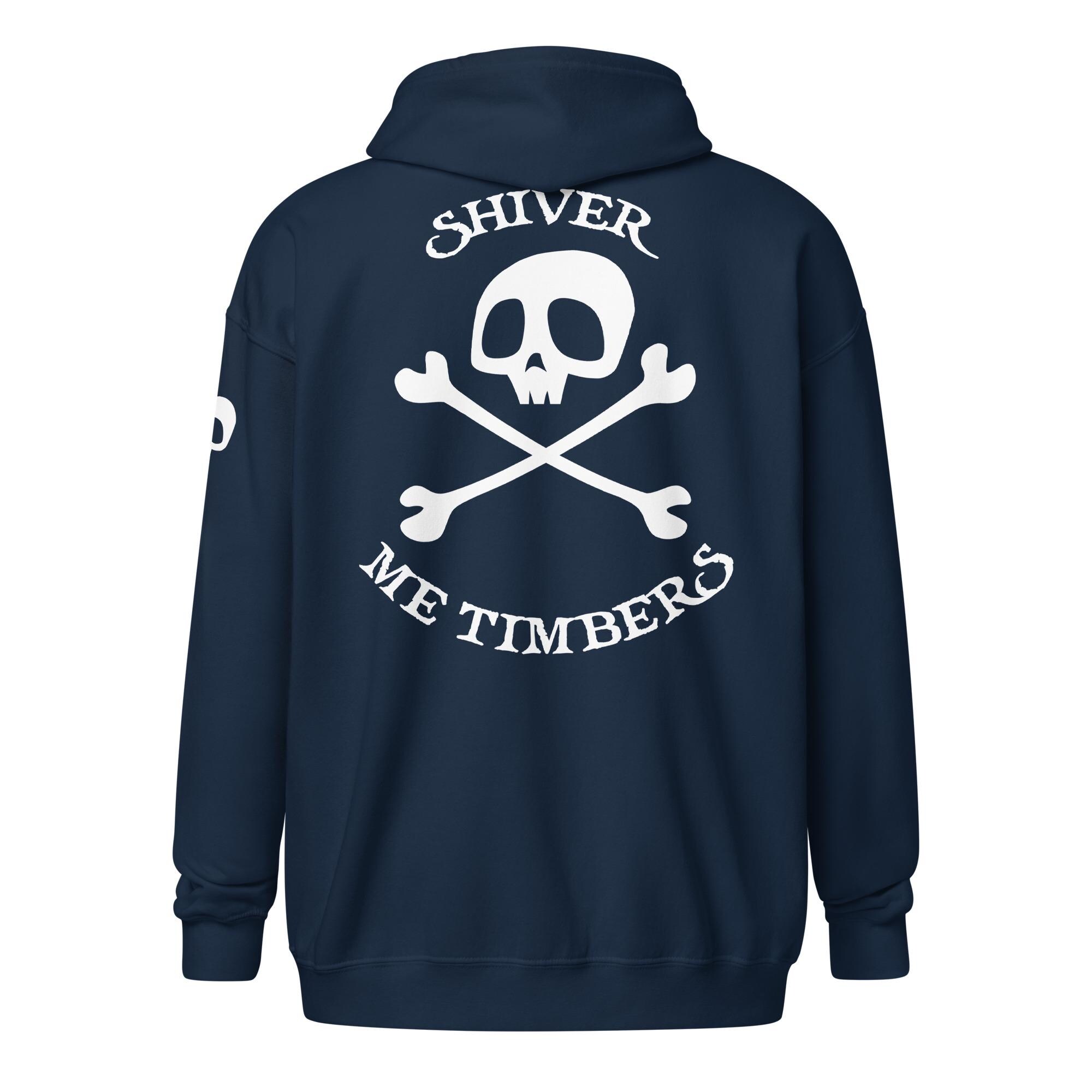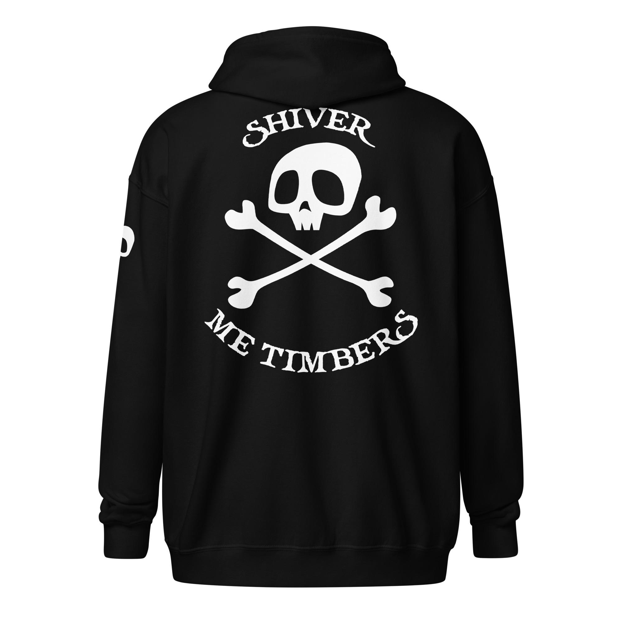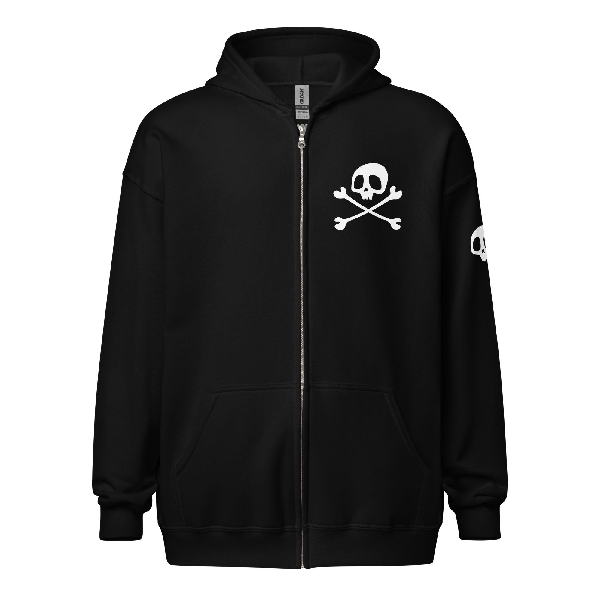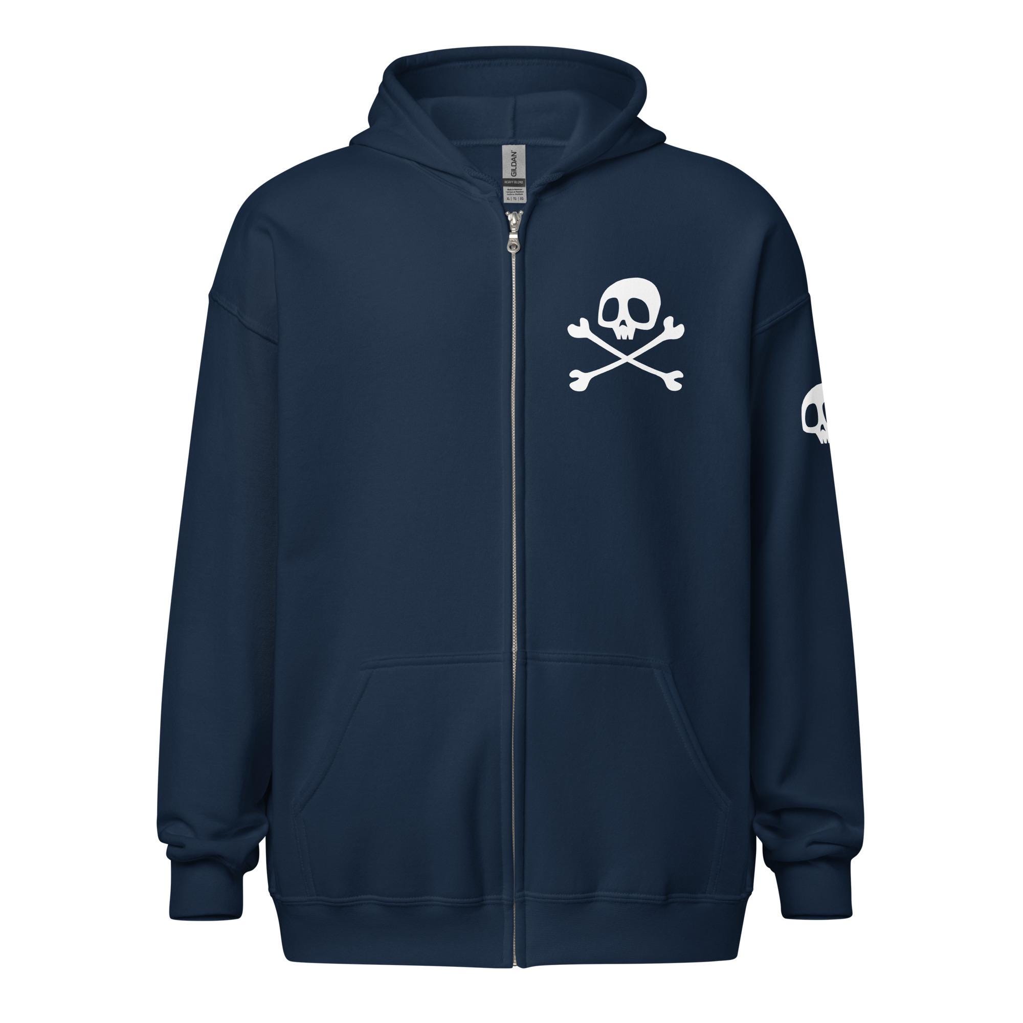 Ahoy, mateys! Whether ye be a pirate or landlubber, this warm zip-up hoodie will make you the envy of the seven seas!