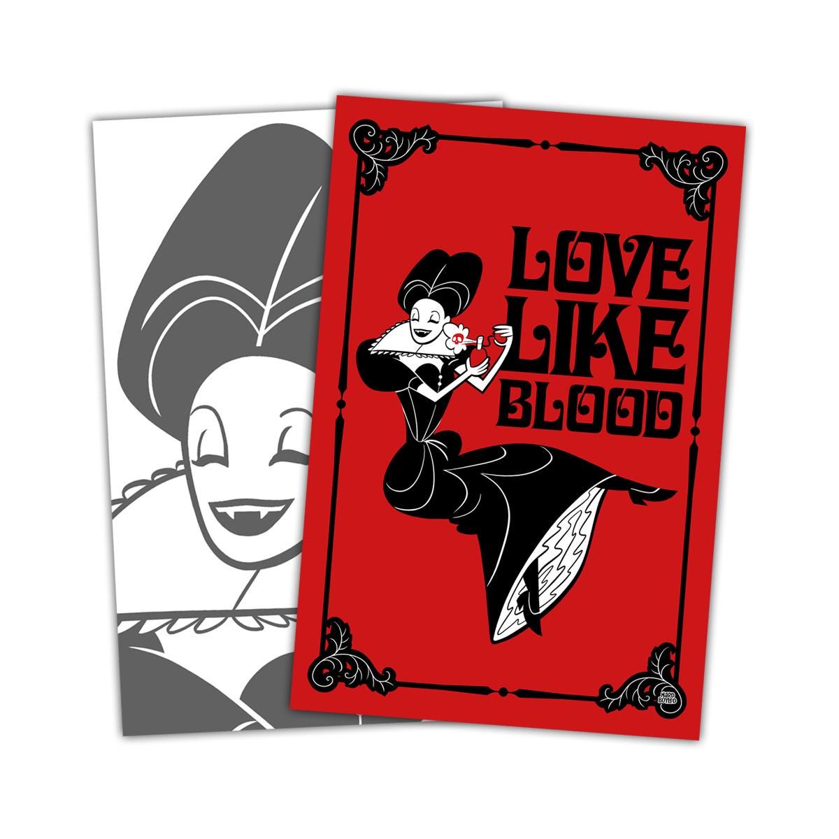 This 4" x 6" postcard features a vampire countess perfuming herself with her favorite scent: Type O Negative. For those who prefer their love stories on the dark side. 🖤